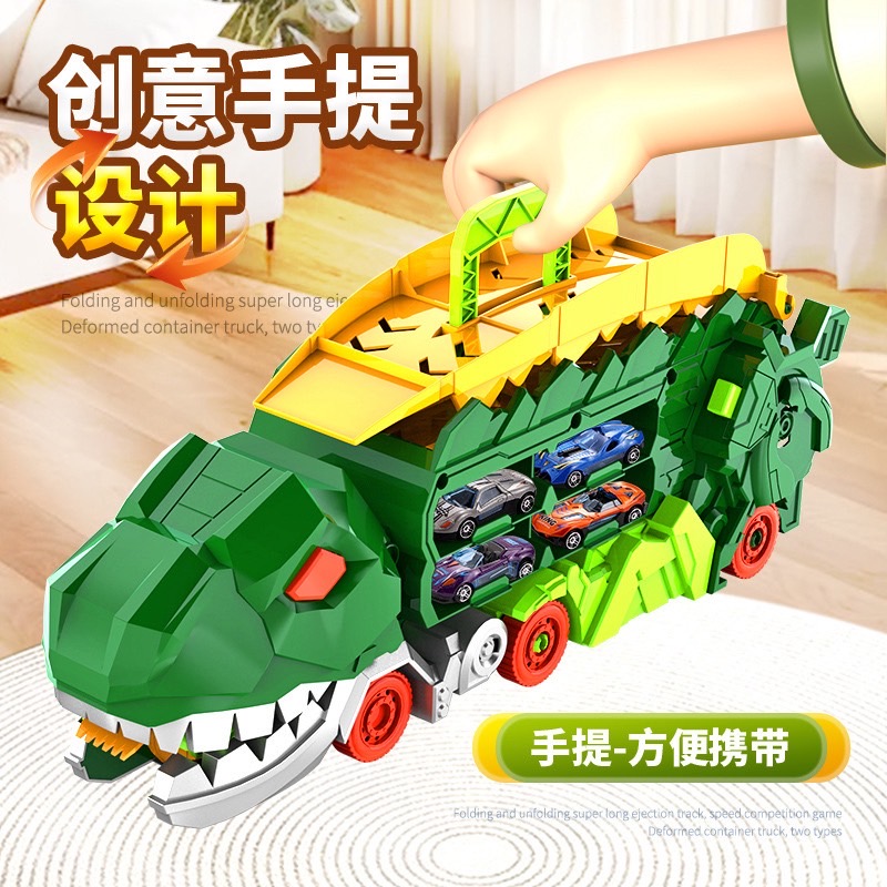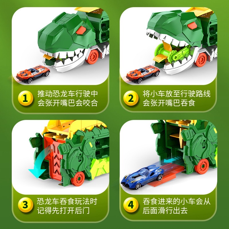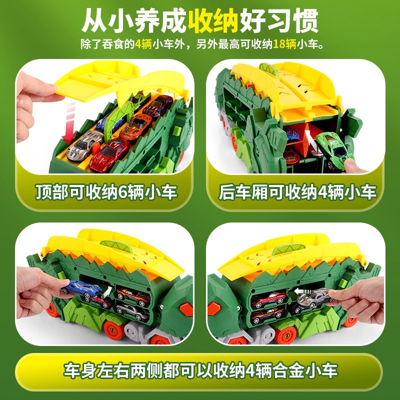 • 🦖 霸氣吞噬機關:推動恐龍車,嘴巴會自動咬合!將小車放在路線上,恐龍就會張開大嘴一口吞下,並從後方滑行而出,爽度破表! • 🔄 超酷雙模式變形:是收納大卡車,也是展開長達 63 公分的巨型恐龍站立軌道!一秒變身,玩法翻倍。 • 📦 超大容量收納:全車最多可收納 18 輛小車(頂部 6 輛 + 兩側 8 輛 + 後車廂 4 輛),從小培養孩子自主收納的好習慣。 • 🏎️ 買就送合金車:隨車附贈 2 輛精美合金小車(款式顏色隨機),收到立刻就能開玩! • 🛡️ 安全耐摔材質:嚴選優質材質,邊角圓潤無毛刺,保護孩子稚嫩小手。