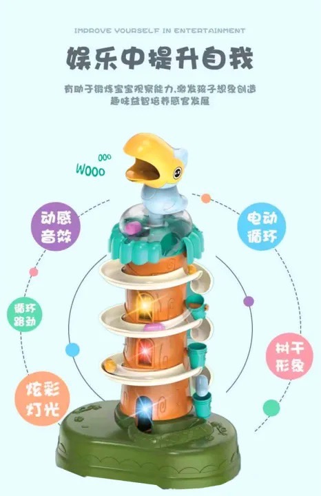 • ⚙️ 電動循環軌道: 一鍵啟動電動模式,小豆豆自動爬升並沿著滑道溜下,無限循環超有趣。 • 🎵 動感歡樂音樂: 樹幹底部自帶歡樂音效,豐富聽覺體驗,讓孩子的童年充滿歡笑。 • 💡 柔和炫彩燈光: 軌道樹幹內建溫和不刺眼的燈光,視覺層次豐富,吸引小眼睛盯著看。 • 🪣 創意小桶傳豆: 獨特緩衝裝置打破傳統滑道,小桶靈活運送,豆豆翻滾更有活力不卡頓。 • 🧠 專注力與感官鍛鍊: 透過追蹤小球的滾動軌跡,啟發孩子想像力,達到趣味益智與感官發展的雙重效果。